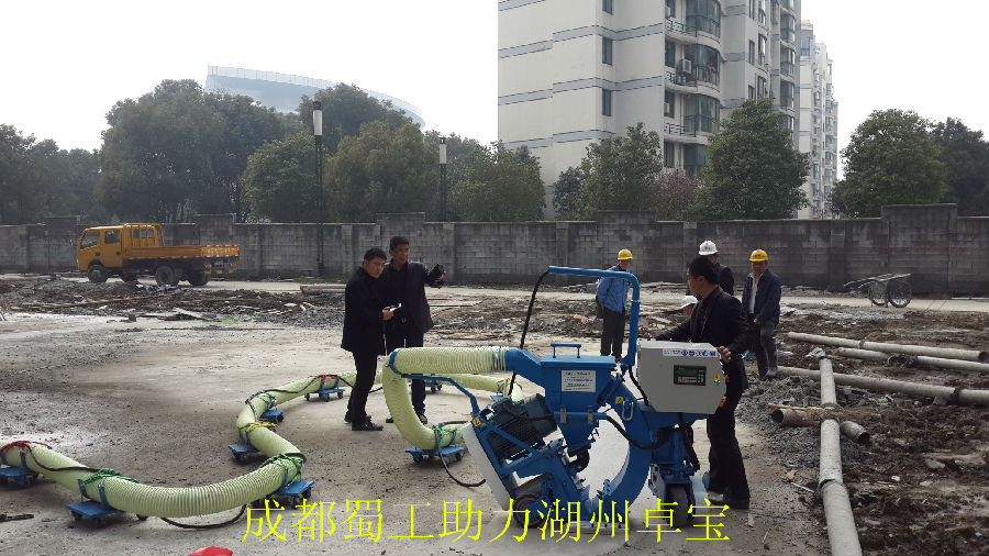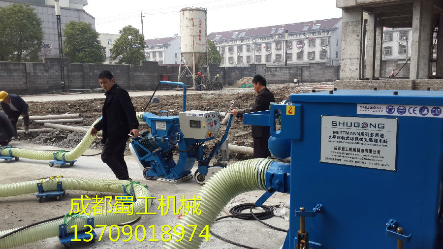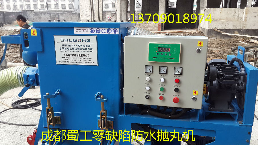 RailwaySG1-280 路面拋丸機(jī)是利用電機(jī)驅(qū)動(dòng)的拋丸輪在高速旋轉(zhuǎn)過(guò)程中產(chǎn)生離心力和風(fēng)力,一定顆粒度的彈丸流入進(jìn)丸管時(shí)(可以控制彈丸的流量)便被加速帶入高速回轉(zhuǎn)的分丸輪中,在離心力的作用下,彈丸由分丸輪窗口拋出進(jìn)入定向套,再經(jīng)由定向套窗口(控制丸料的拋打方向)拋出,由高速回轉(zhuǎn)的葉片拾起,并沿葉片之長(zhǎng)度方向不斷加速運(yùn)動(dòng)直至拋出,拋出的彈丸形成一定的扇型流束,沖擊工作平面起著清理強(qiáng)化的作用。然后彈丸和灰塵、雜質(zhì)一起經(jīng)過(guò)反彈室來(lái)到儲(chǔ)料斗的上方。大功率的除塵器通過(guò)儲(chǔ)料斗上方的分離裝置將丸料和灰塵分離,丸料進(jìn)入儲(chǔ)料斗繼續(xù)循環(huán)使用,灰塵則通過(guò)連接管進(jìn)入除塵器。當(dāng)灰塵進(jìn)入除塵器后,通過(guò)濾芯的分離,停留在儲(chǔ)灰斗中和濾芯的表面。自動(dòng)反吹除塵器可以通過(guò)壓縮機(jī)提供的反吹空氣自動(dòng)間隔清理每一個(gè)濾芯。**后在機(jī)器內(nèi)部通過(guò)配套吸塵器的氣流清洗,將丸料和清理下來(lái)的雜質(zhì)分別回收,并且使丸料可以再次利用。拋丸機(jī)配有除塵器,基本可做到少塵少污染施工,既提高了效率,又保護(hù)環(huán)境。